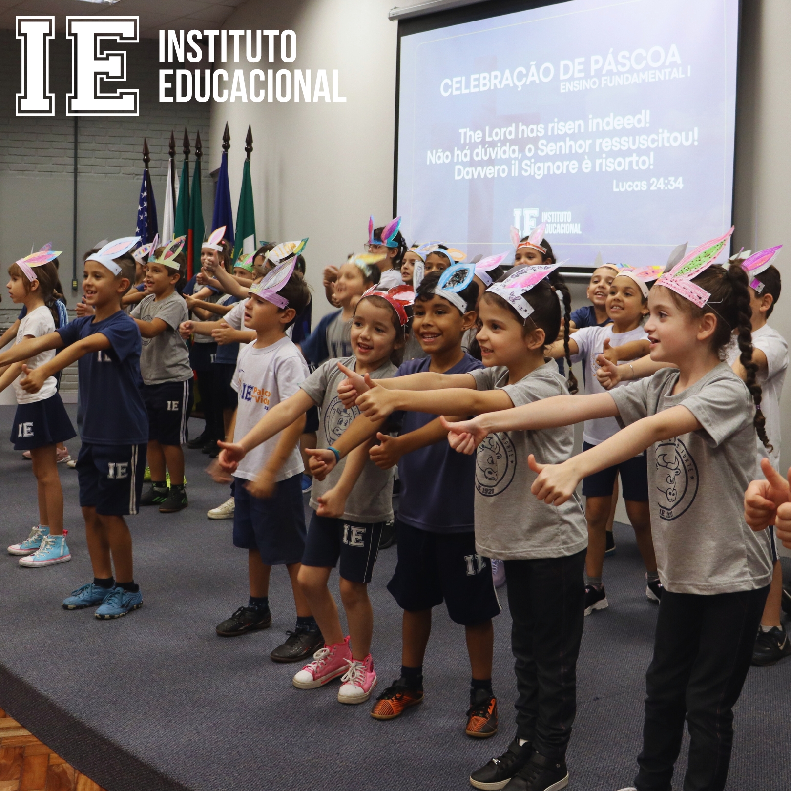 Neste ano, com os estudantes da Educação Infantil ao Ensino Médio, fizemos questão de tornar a celebração da Páscoa uma experiência única e memorável. Nos últimos dias, dançamos, cantamos e nos unimos como uma grande família para celebrar essa data tão especial.